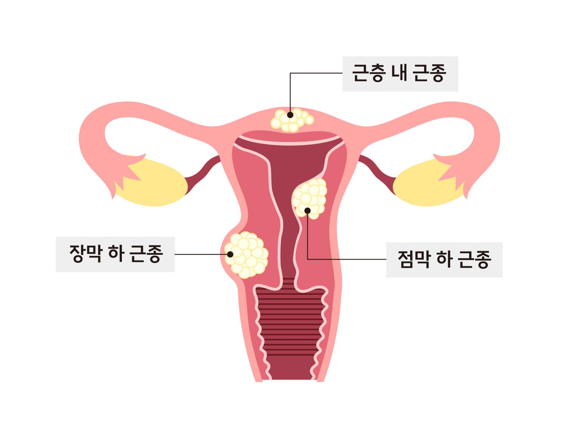 자궁근종은 자궁의 평활근에 생기는 양성종양을 의미합니다. 35세 이상 여성의 약 4~50%에서 진단될 만큼 흔한 질병으로 발생 위치에 따라 장막하/근층내/점막하 근종으로 구분합니다.